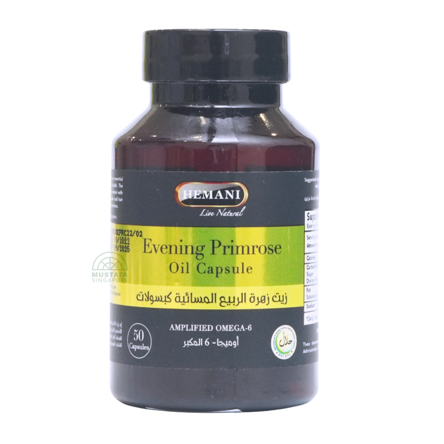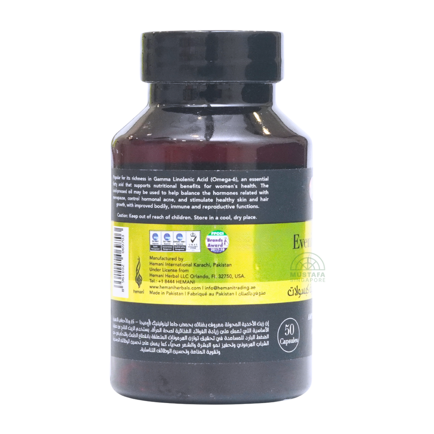 Hemani Herbal Oil Capsule – Evening Primrose Oil contains premium cold‑pressed evening primrose oil encapsulated in vegan softgels. Rich in gamma-linolenic acid (GLA) and essential fatty acids, this botanical supplement is designed to support women’s health, skin vitality, and hormonal balance naturally.
