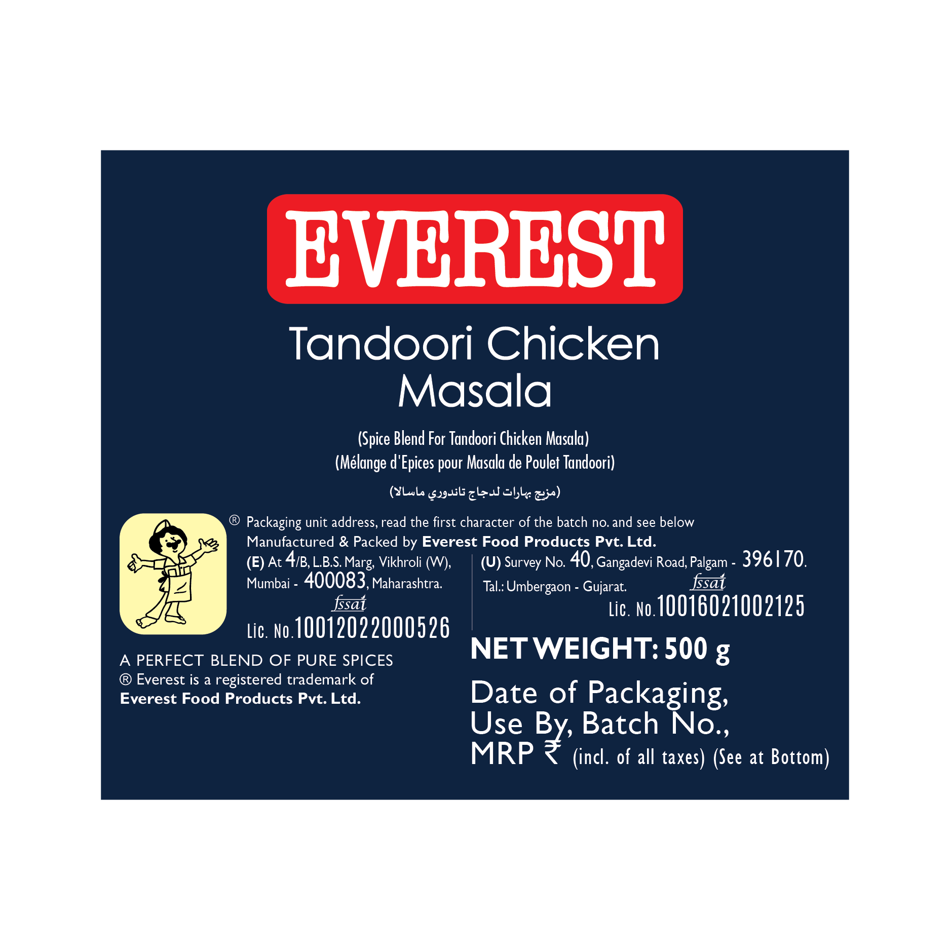Everest Tandoori Chicken Masala is a flavorful spice blend crafted to give authentic North Indian tandoori chicken its signature taste. Made from a carefully balanced mix of aromatic spices, it delivers smoky, savory, and mildly spicy flavors, perfect for grilling, roasting, or baking chicken.