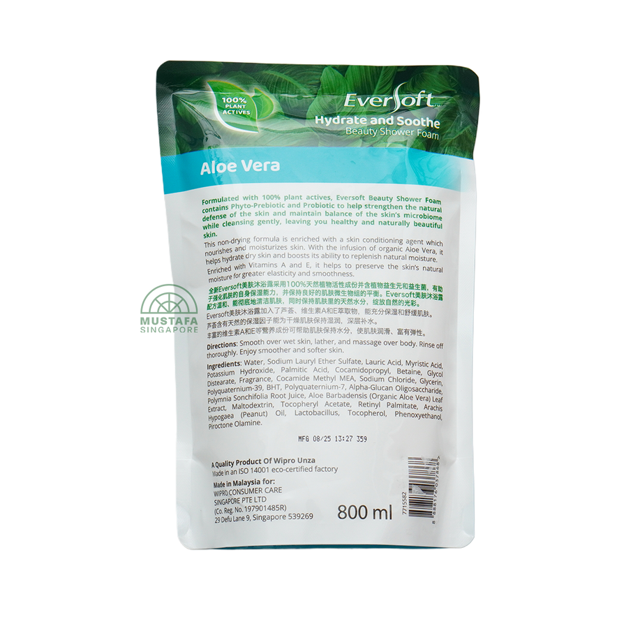 Eversoft Shower Foam Refill Pouch Aloe Vera & Vitamins A & E 800ml