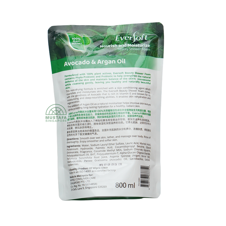 Eversoft Shower Foam Refill Pouch Avocado & Argan Oil 800ml
