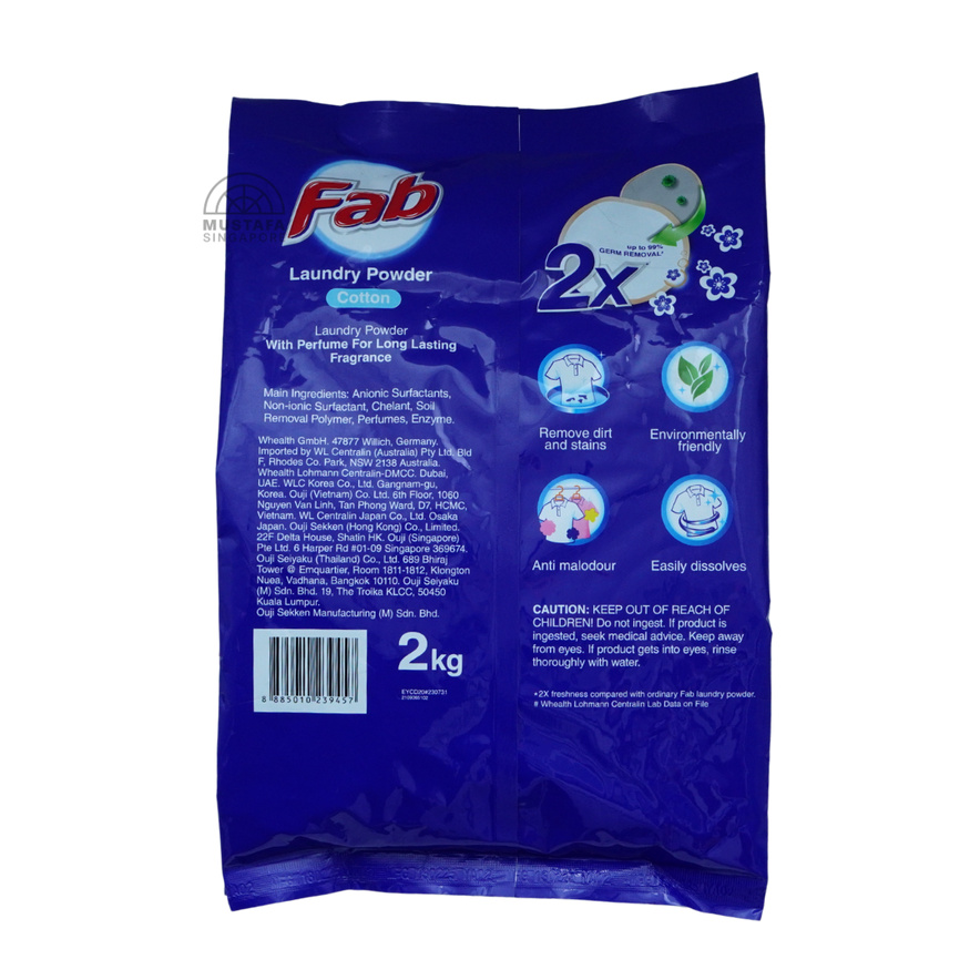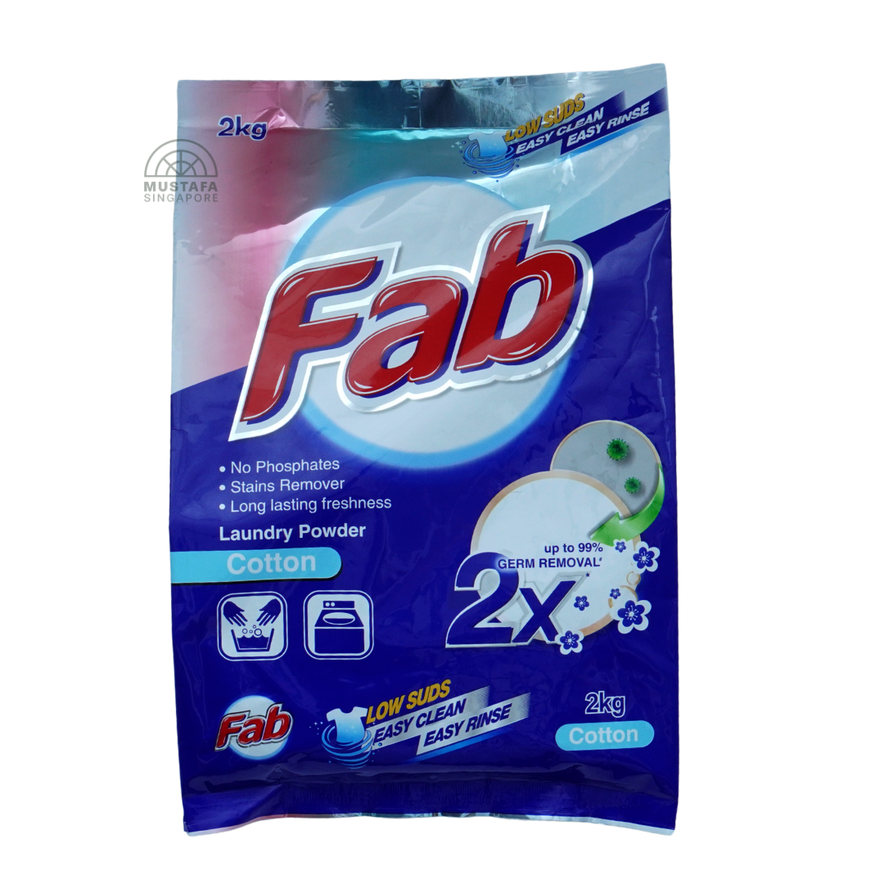 Enjoy everyday freshness and softness with FAB Laundry Powder Cotton 2kg. Designed to care for cotton fabrics while providing deep stain removal, this detergent leaves clothes looking clean, smooth, and comfortable. Its light, refreshing fragrance lasts all day, keeping your laundry fresh and pleasant. With its larger size, it's perfect for households that want consistent cleaning power, reliable performance, and excellent value in every wash.