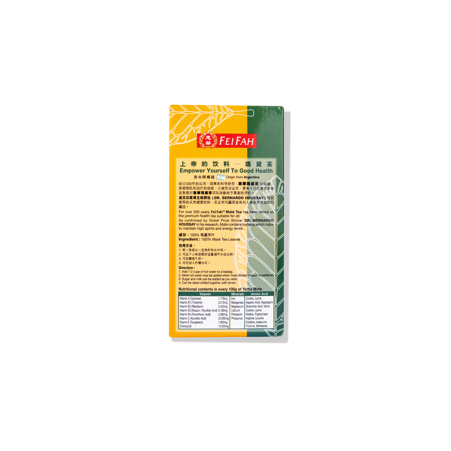 A natural, nutritious, and healthy organic tea. Originating from Argentina, Yerba Mate is a naturally delicious and highly nutritious health tea. This tea bag contains 100% pure high-quality leaves, with no artificial colors or impurities.