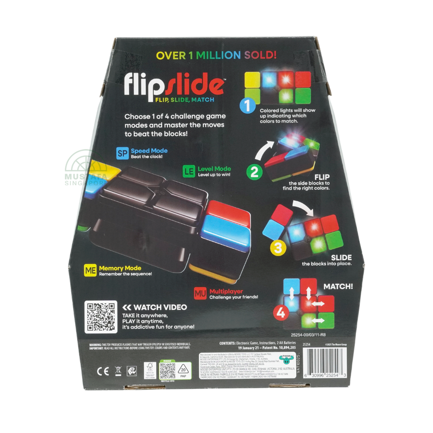 Flipslide is a fast-paced electronic puzzle game that challenges players to match lights and patterns under time pressure. Players flip, twist and slide the device to align colours before the timer runs out. The game offers solo, multiplayer and speed modes, providing long-lasting entertainment. A highly engaging handheld game for puzzle lovers.