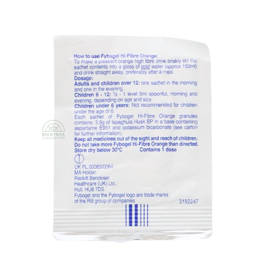 Fybogel Hi-Fibre Ispaghula Husk Orange Flavoured 10 sachets
