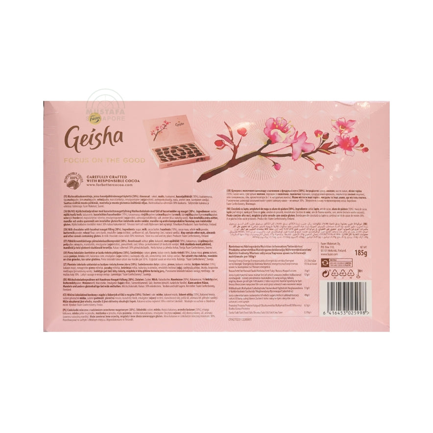 Indulge in the exquisite bliss of Fazer Geisha, where thin milk chocolate enrobes a luxuriously soft yet crispy hazelnut nougat centre. Made in Finland using 100% responsibly sourced cocoa, this elegant treat offers a delightful contrast in texture—from the smooth outer shell to the nuanced crunch within. Perfect as a sophisticated gift or a moment of everyday indulgence.
