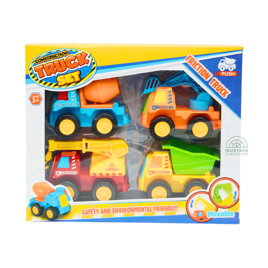 The Construction Truck Set includes four miniature construction vehicles designed for imaginative building and role-play activities. Each vehicle is durable and easy for small hands to push and manoeuvre. Friction-powered movement encourages physical activity and open-ended play. This set supports coordination, creativity and early pretend engineering.