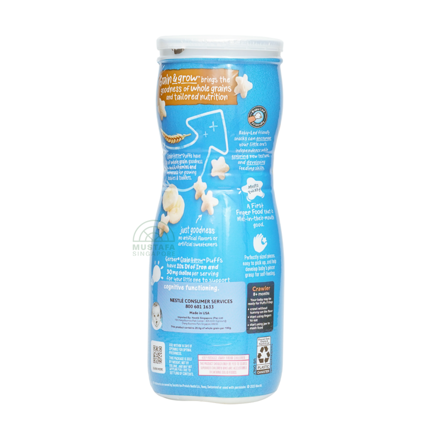 Gerber Snacks for Baby Grain & Grow Puffs Banana 42g are light, melt-in-the-mouth puffs made with real banana and whole grains. Perfect for babies from 8 months onwards, these puffs support healthy growth and fine motor skills development while providing a naturally sweet and nutritious snack.