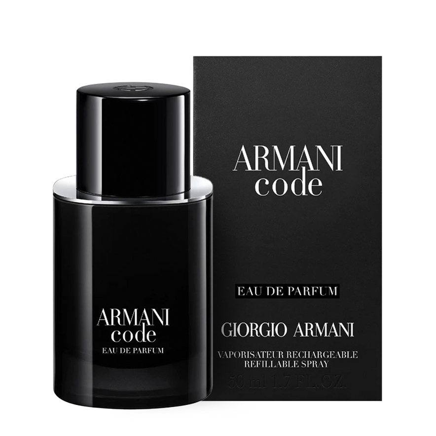 Giorgio Armani Armani Code Eau De Parfum 50ml combines fresh citrus, spicy accords, and warm tonka bean and leather base notes in a compact, portable size. It delivers a seductive, elegant scent ideal for evening wear and special occasions.