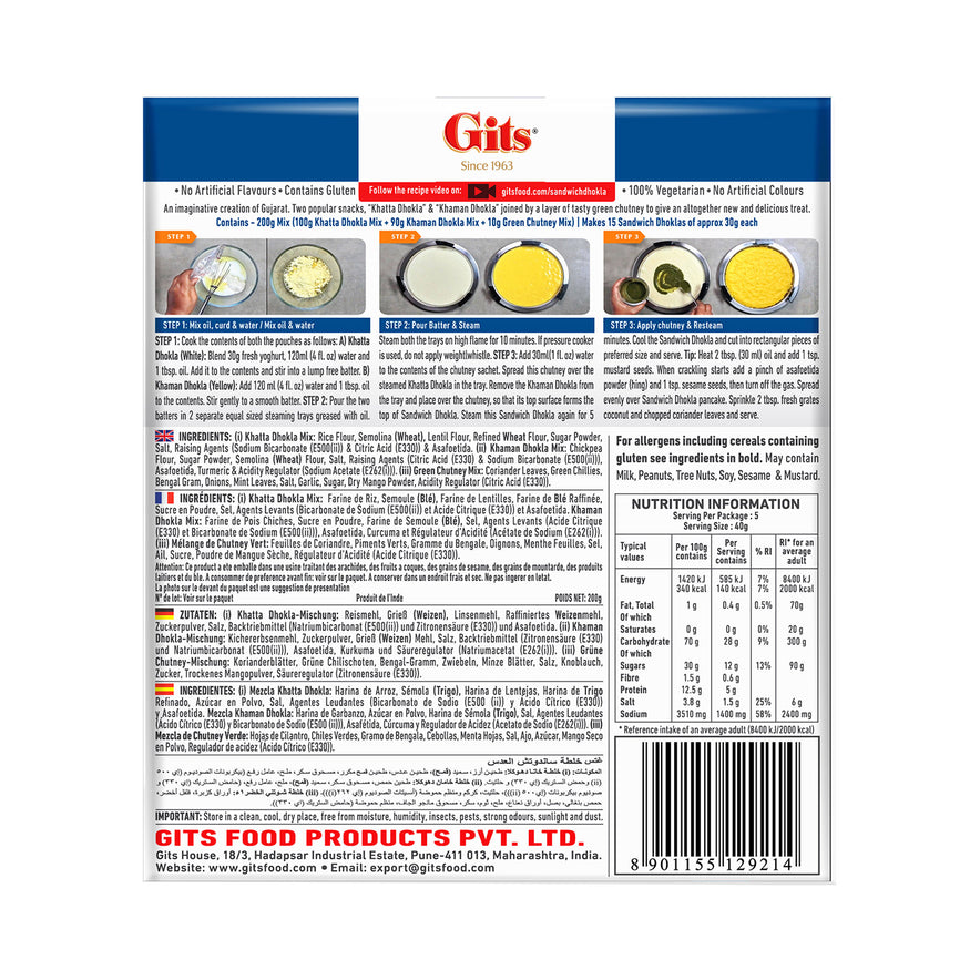 Mix the contents with water and follow the instructions on the pack to prepare batter. Steam the batter to make soft and spongy layers of dhokla, then layer them with chutney or seasoning to complete the sandwich dhokla.