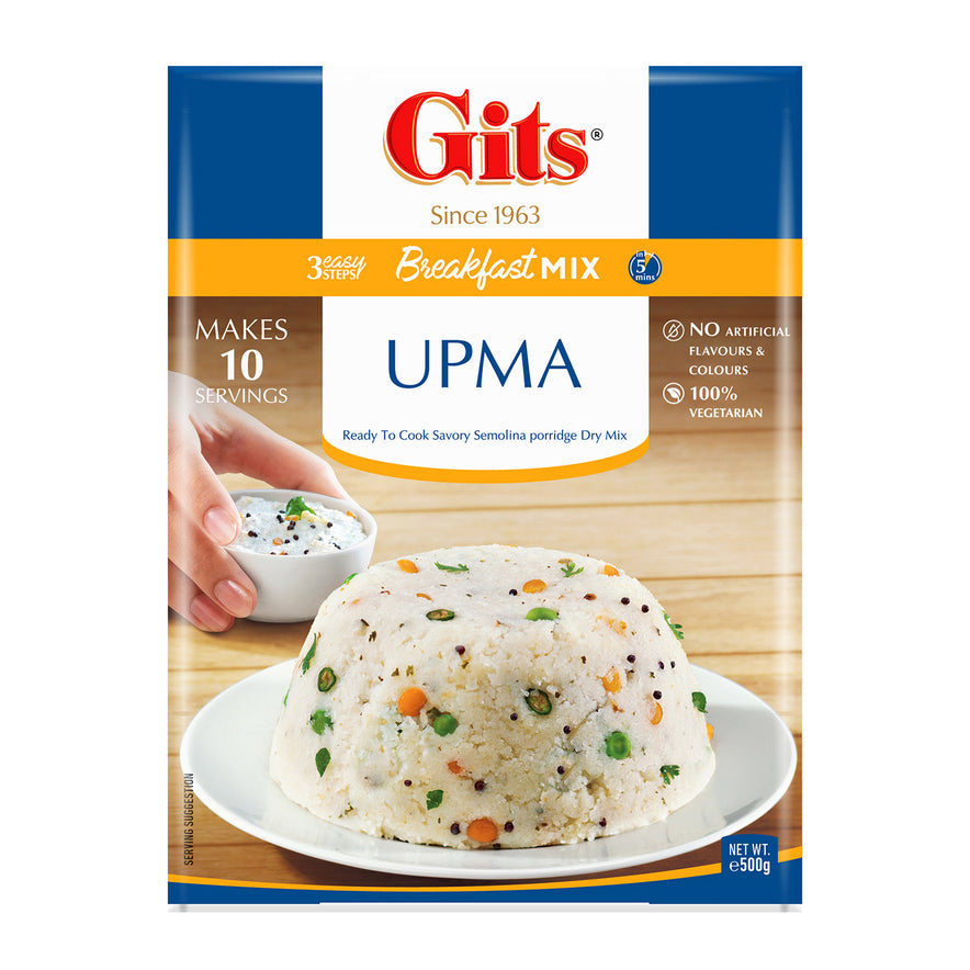Gits Upma Instant Breakfast Mix 500g offers a convenient way to enjoy a traditional South Indian breakfast at home. Made with quality semolina and a blend of aromatic spices, this ready-to-cook mix allows you to prepare soft, savory upma in minutes—just add water, cook, and serve. Ideal for a quick, wholesome breakfast or light meal for the whole family.