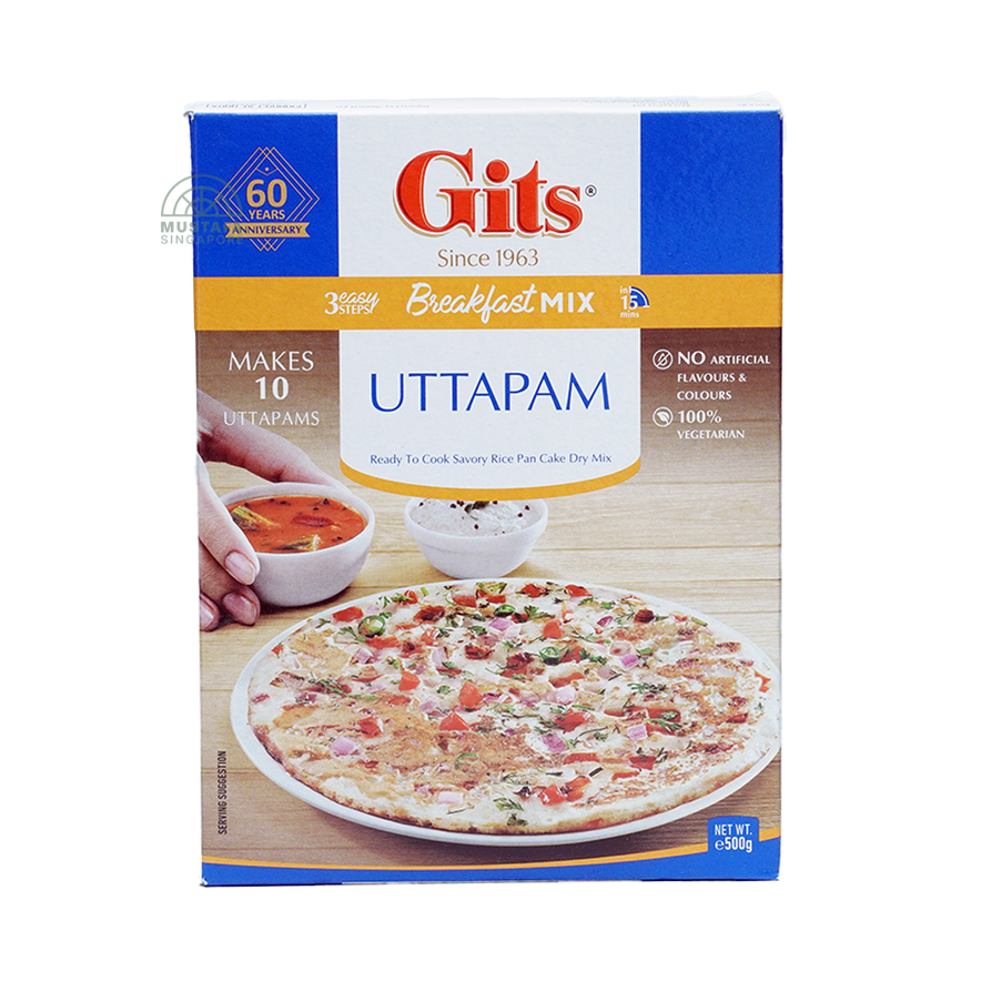 Gits Uttapam Instant Breakfast Mix 500g makes it easy to prepare soft, fluffy, and flavorful South Indian uttapams at home. Made from a traditional blend of rice and lentils, this ready-to-cook mix requires no fermentation - simply add water, cook, and top with your favorite vegetables. Ideal for a wholesome breakfast or light meal, best served with chutney and sambar.