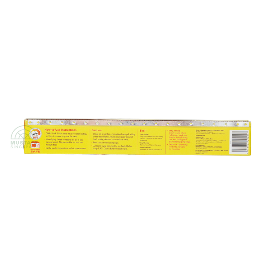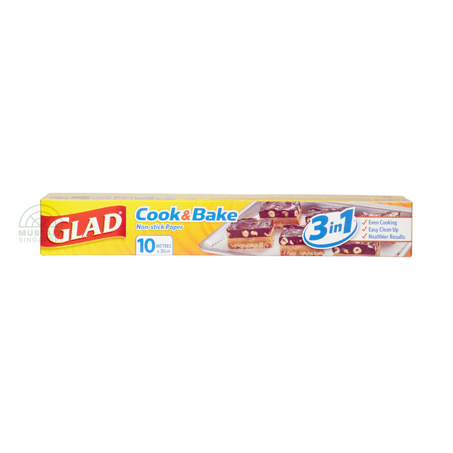 Glad Cook & Bake Non-Stick Paper (10m) makes cooking and baking easier with its double-sided non-stick coating that ensures effortless food release and healthier results with less oil. Heat-resistant up to 230°C, it is safe for use in ovens, fry pans, microwaves, sandwich makers, and even BBQ hotplates - just avoid direct flame contact. Perfect for lining trays, wrapping food, or preparing sticky bakes, this versatile paper keeps your cookware clean and minimises mess, giving you more time to enjoy delicious meals with less cleanup.