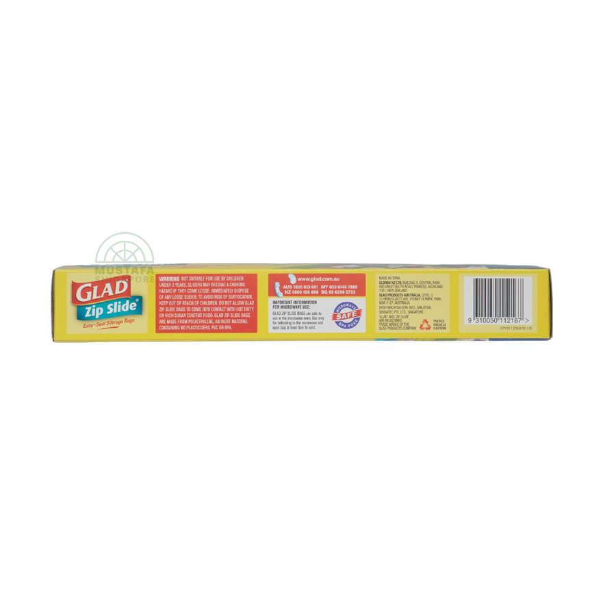 Glad Zip Slide Large Storage Bags (8 bags) offer an easy-seal solution with a secure slide zipper that locks tight to prevent leaks and keep food fresh. Perfect for storing larger items such as fruits, vegetables, marinated meats, or leftovers, these durable BPA-free bags are designed with a wide opening for easy filling and a strong seal for peace of mind. Measuring 30 cm × 33 cm, they are reusable, microwave-safe, and ideal for both fridge and pantry organisation.