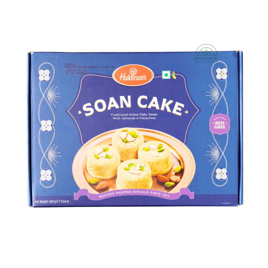 Haldiram's Kaju Soan Cake is a luxurious, melt-in-your-mouth Indian dessert that blends the rich creaminess of handpicked cashews with the nutty textures of almonds and pistachios. A soft, premium treat that's both flavorful and elegantly indulgent. This is a delightful innovation on the classic Soan Cake, offering a dense, rich mouthfeel perfect for special occasions or gifting.