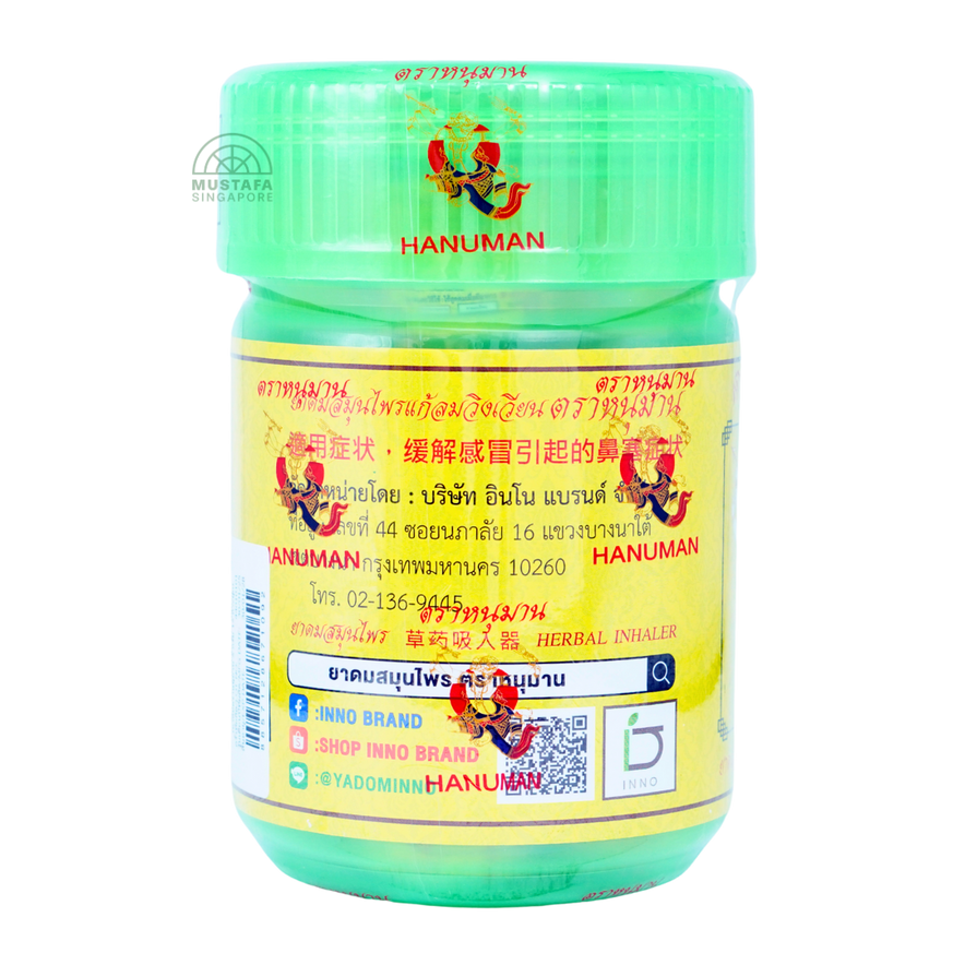Hanuman Thai Herbal Inhaler Giant (Green) 15s offers the same traditional herbal blend as the pocket size but in a larger jar for longer-lasting use. Each jar contains menthol, clove, cardamom, camphor, Borneo camphor and eucalyptus oil that deliver a fresh, aromatic scent to relieve nasal congestion, dizziness and fatigue. The giant size is ideal for home or office use and lasts longer between replacements.