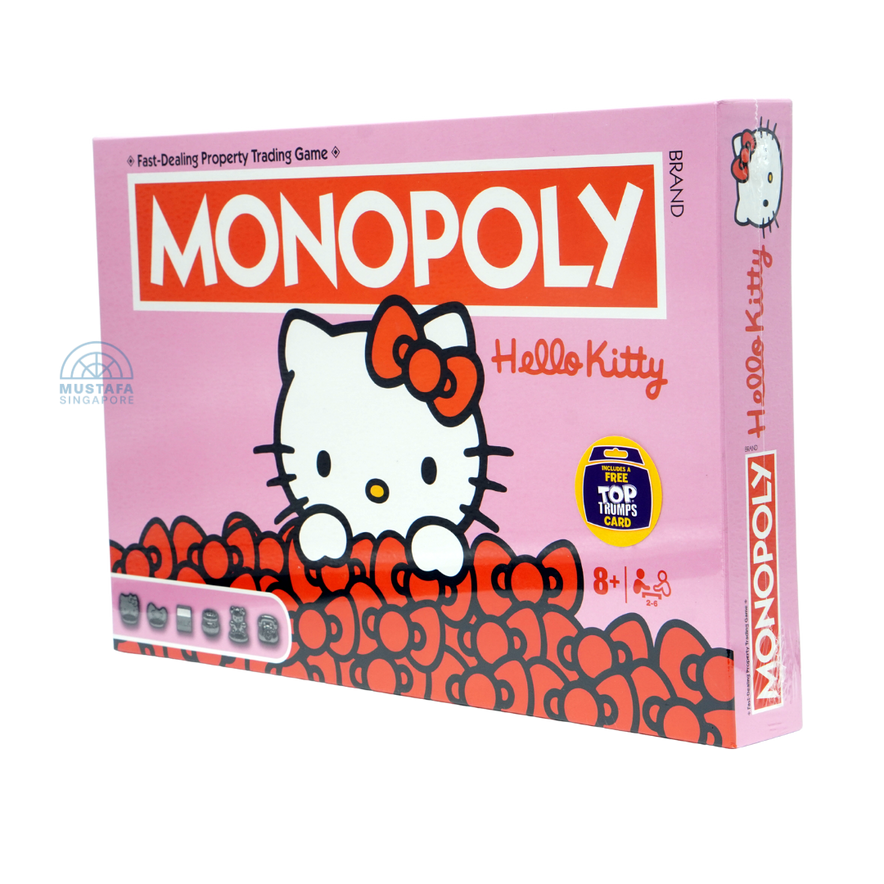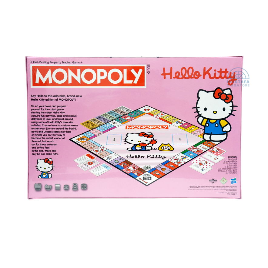 The Hasbro Gaming Monopoly Hello Kitty Edition brings the cute and iconic world of Hello Kitty to the classic Monopoly game. Players can buy, sell, and trade themed locations inspired by Hello Kitty and her friends while enjoying custom artwork, tokens, and playful design elements. Blending timeless Monopoly gameplay with charming Hello Kitty flair, this special edition is perfect for fans of the beloved character and families looking for a fun, collectible board game experience.