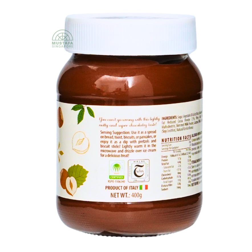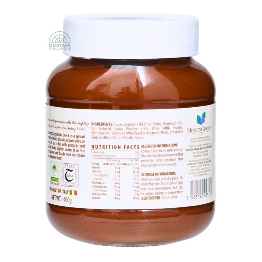 Contains hazelnuts, milk, and soy. May contain traces of other nuts.