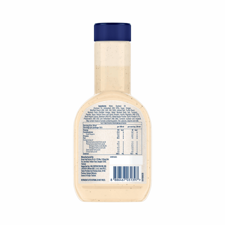 Hellmann's Truffle Dressing infuses rich truffle aroma into a smooth, creamy base for a luxurious dressing that adds depth and indulgence to everyday meals.