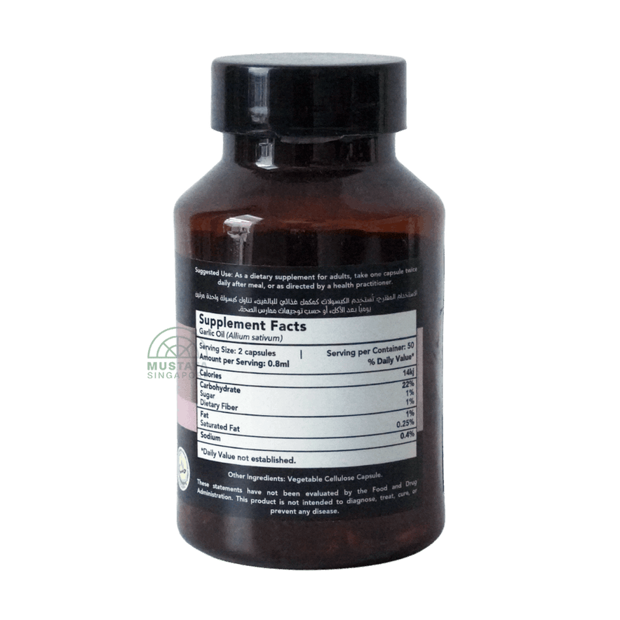 Hemani Herbal Oil Capsule - Garlic is a dietary supplement formulated to support overall health and well-being. Each capsule contains garlic oil, known for its potential to enhance energy levels, improve cognitive function, and bolster the immune system. This product is made with 100% natural herbal oils and is both vegan and gluten-free.