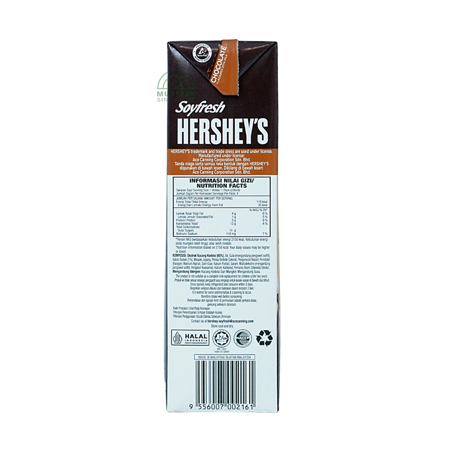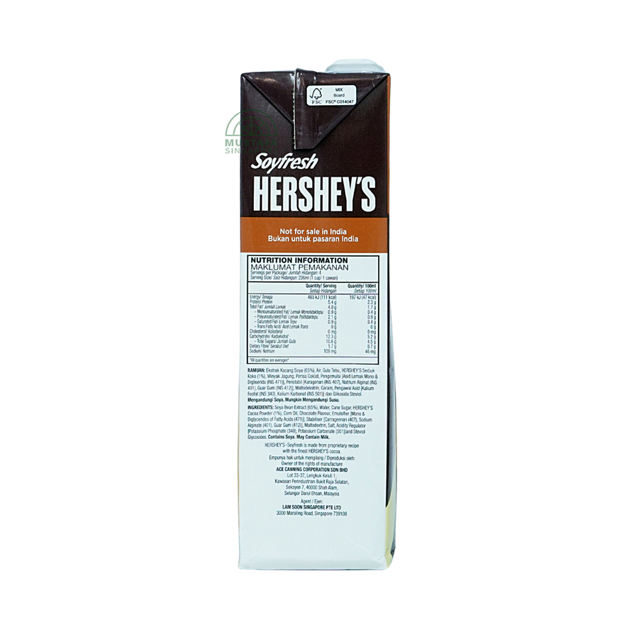 Enjoy the rich, creamy taste of Hershey's Soyfresh Chocolate Soya Milk 946 ml - a delicious blend of soy goodness and indulgent Hershey's chocolate flavour. Dairy-free and cholesterol-free, this smooth beverage is perfect for breakfast, dessert, or anytime indulgence.