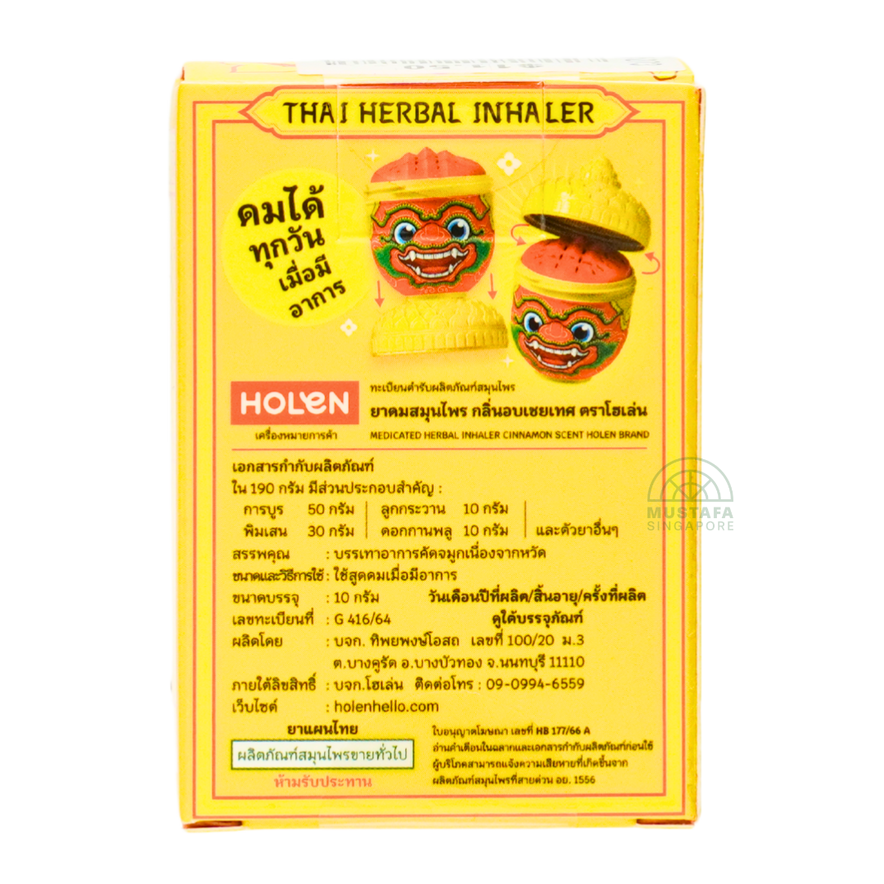 Holen Ramakien Herbal Inhaler in Sukreep Cinnamon scent is a Thai herbal nasal inhaler infused with Cinnamon (the “fire element”) to promote healthy blood circulation and invigorate the senses. This elegantly designed inhaler (10g) blends tradition and modern Thai aesthetics, crafted by designers and Thai herbal experts. Suitable for daily use, it’s also a thoughtful and refreshing gift.