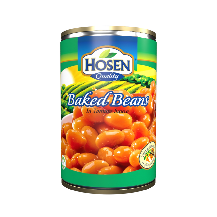 Hosen Baked Beans 425g feature tender beans in a rich tomato sauce. Ready to eat straight from the can or warmed up, they make a convenient, tasty addition to breakfasts, snacks, toast, or meals. Halal certified.