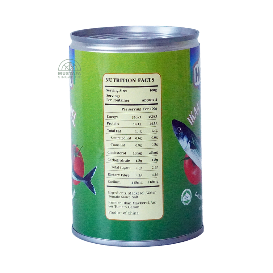 Hosen Mackerel in Tomato Sauce 425g features tender mackerel pieces cooked and packed in rich tomato sauce for a wholesome and flavourful meal. A source of protein and omega-3, it can be enjoyed with rice, noodles, or bread, or used in stews and curries. Convenient and ready-to-eat, this canned fish is a versatile choice for quick, satisfying dishes.