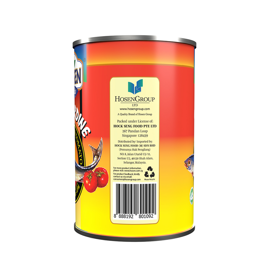 Hosen Sardine in Tomato Sauce 425g delivers tender sardines cooked in a rich tomato sauce for a hearty and flavourful meal. High in protein and omega-3, it is a nutritious option that can be enjoyed with rice, noodles, or bread, or used in stews and curries. Convenient, ready-to-eat, and Halal certified, it is a pantry essential for quick, satisfying dishes.