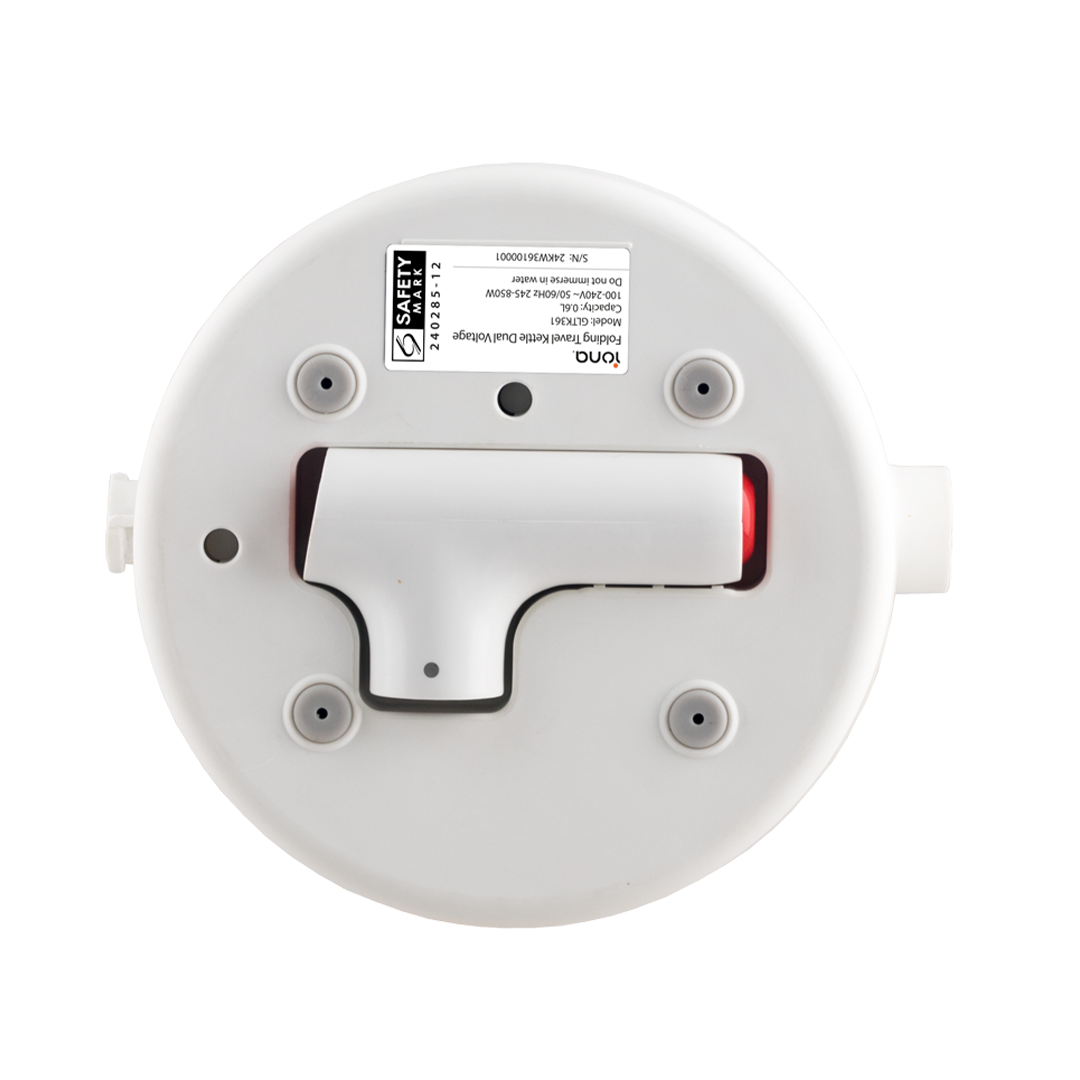 Iona 0.6L Travel Kettle deature worldwide use, dual voltage, LED live temperature display, 6 keep warm temperature selection, power auto cut off after boil and foldable compact design for easy storage.