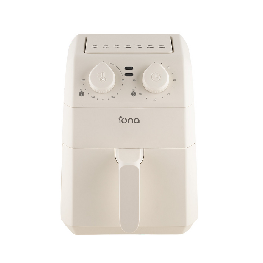 Iona 3L Air Fryer features its compact size, large capacity basket, auto shutoff function, adjustable temperature 0 - 200°c and timer up to 60 minutes.