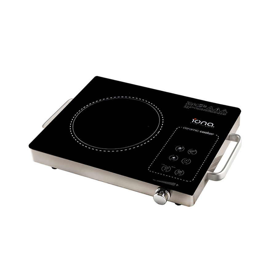 Iona Portable Ceramic Hob features 3 in 1 cooker, advanced infrared heating technology, double ring control, no radiation and 8 levels of heating selection 100-2200W.