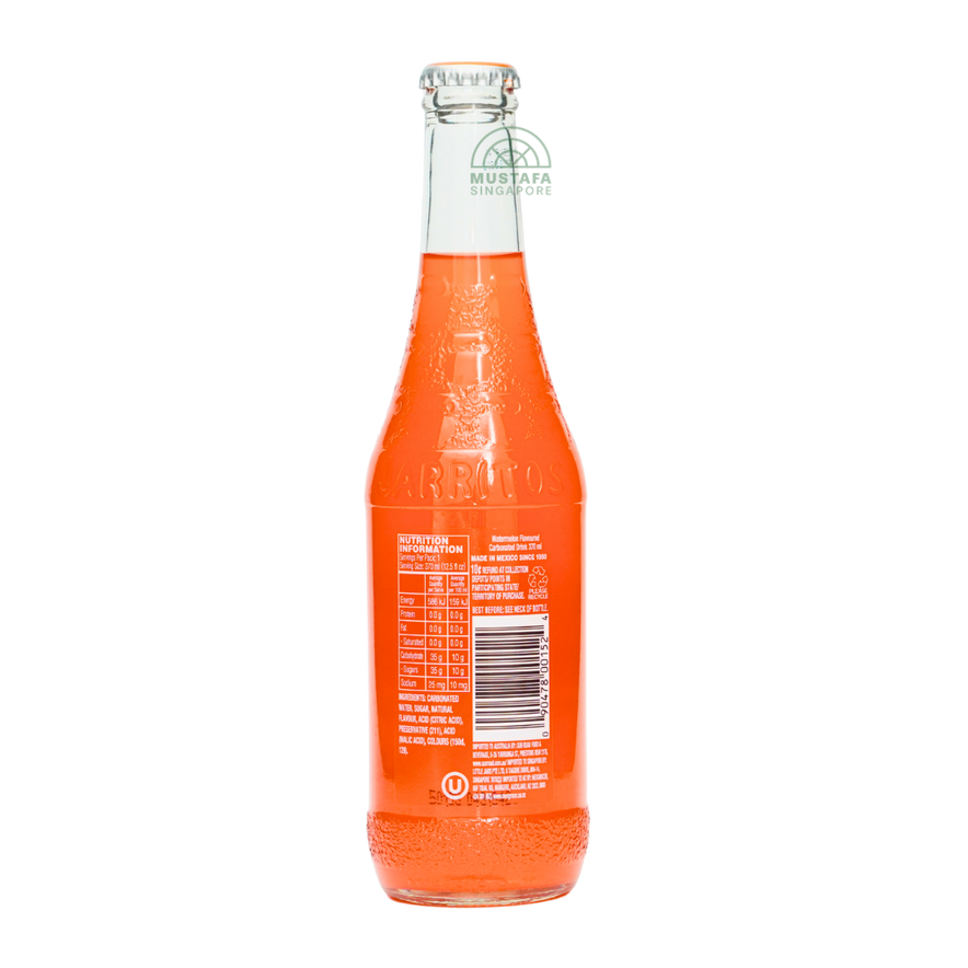 Quench your thirst with the juicy taste of Jarritos Watermelon Soda, crafted with natural watermelon flavor for a fun and fruity sparkling beverage.