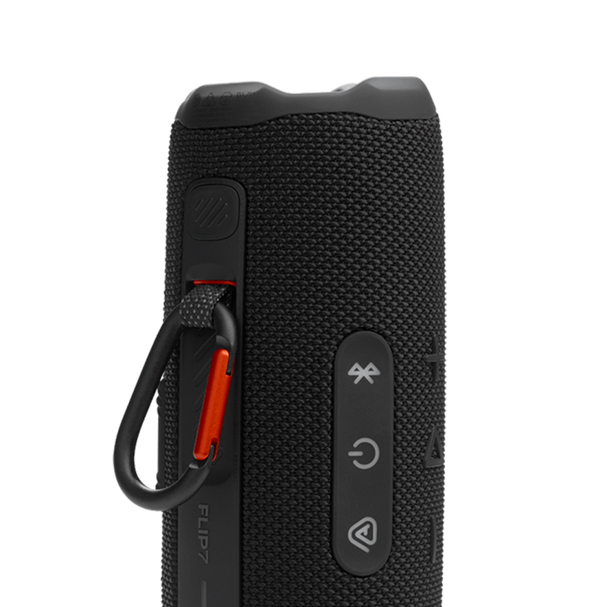 The JBL Flip 7 is a rugged, portable Bluetooth speaker delivering bold JBL Pro Sound enhanced by AI Sound Boost. It features a redesigned tweeter for clearer highs and an upgraded tweeter dome, plus a new PushLock interchangeable attachment system. With up to 16 hours of playtime (14 hours standard + 2 hours via Playtime Boost), IP68 waterproof, dustproof, and drop-proof design, support for USB-C lossless playback, and multi-speaker pairing via Auracast™, it's built for all environmentssindoor or out. The enclosure also incorporates recycled materials and is managed via the JBL Portable app.