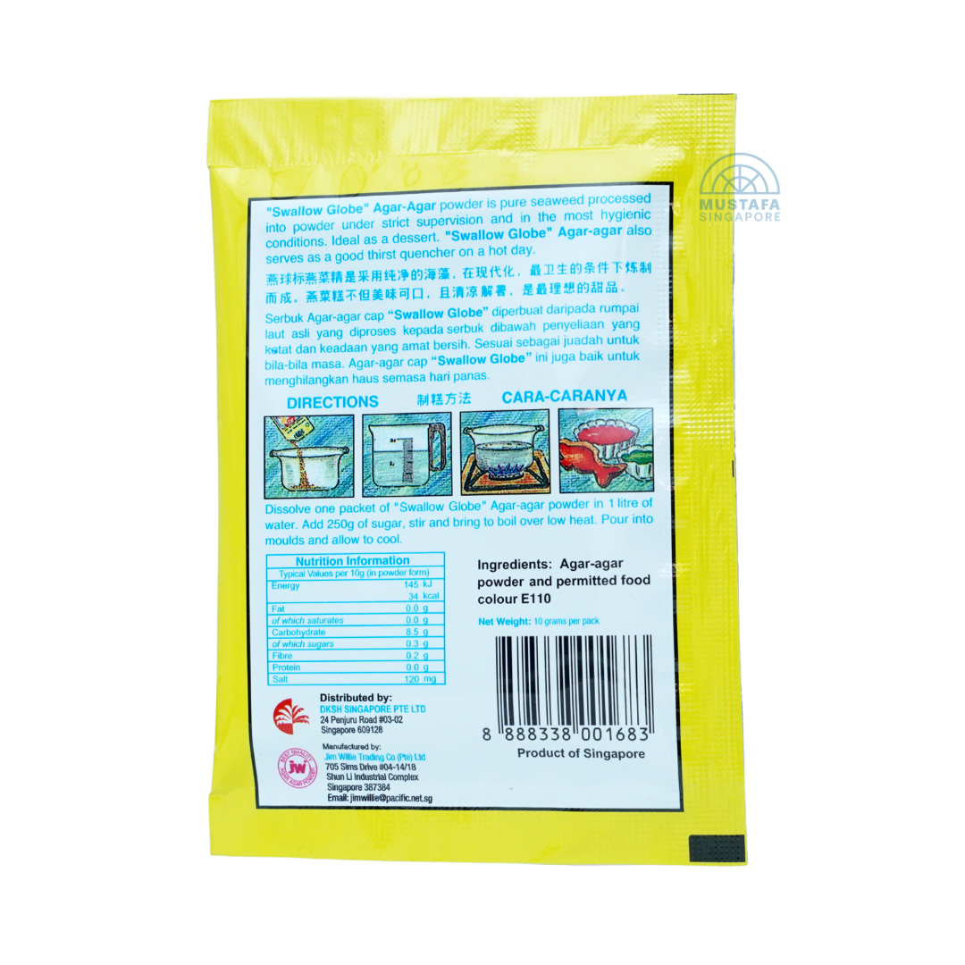 Swallow Globe Agar Agar - Orange produces a beautiful orange-colored jelly with a smooth, glossy finish. It's easy to use for puddings, layered desserts, and fruit molds.