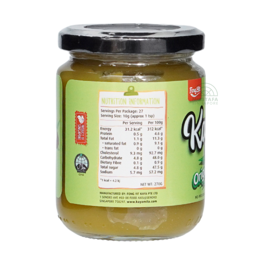 Experience the iconic taste of Peranakan-style kaya with Kayamila’s Original Coconut Kaya Spread—an ode to generations of craftsmanship. Inspired by Fong Yit’s traditional recipe, this smooth and fragrant spread is crafted with locally sourced eggs, creamy coconut milk, and a hint of pandan aroma. Perfect for kaya toast or a sweet boost to any breakfast.
