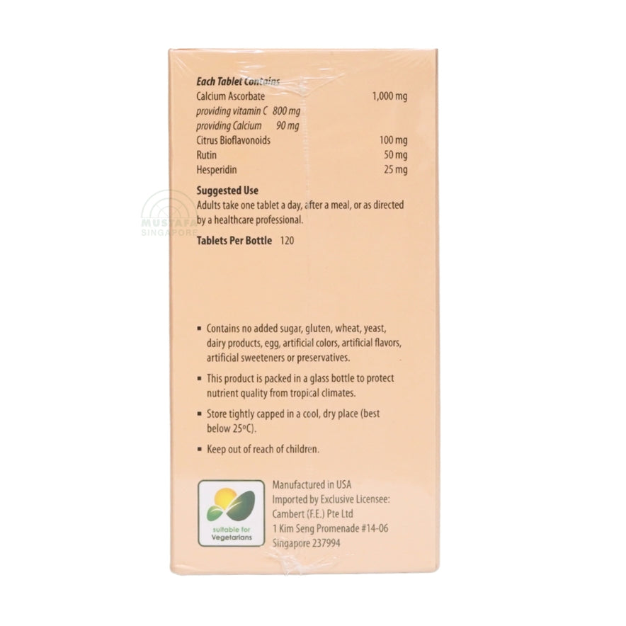 Each Tablet Contains: Calcium Ascorbate 1000 mg, Vitamin C 800 mg, Calcium 90 mg, Citrus Bioflavonoids 100 mg, Rutin 50 mg, Hesperidin 25 mg