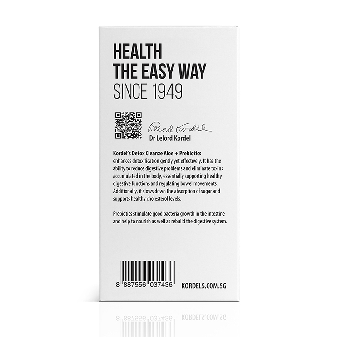 Give your digestive system the care it deserves with Kordel’s Detox Cleanze Aloe Vera + Prebiotics, a vegetarian-friendly formula designed to enhance detoxification naturally. Combining aloe vera, konjac glucomannan, soybean oligosaccharides, and inulin, it works to soothe digestion, regulate bowel movements, support healthy cholesterol and blood sugar levels, and promote a balanced gut microbiome. Formulation Highlights Aloe Vera (100 mg) — natural cleansing and digestive support Konjac Glucomannan (200 mg) — soluble fiber to promote fullness and healthy gut transit Soybean Oligosaccharides (100 mg) & Inulin (100 mg) — feed beneficial bacteria and support gut integrity.