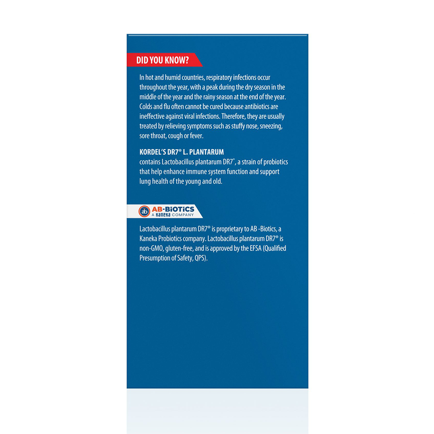 Promote overall wellness with Kordel’s DR7® L. Plantarum, a premium probiotic formula delivering 1 billion CFU of the patented Lactobacillus plantarum DR7® strain per capsule. Scientifically validated for its ability to support immune function and promote lung health across all ages, this gut-friendly supplement helps enhance body defence and respiratory vitality.