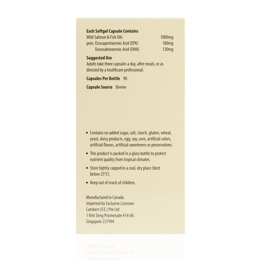 Wild salmon & fish oils 1000 mg providing eicosapentaenoic acid (EPA) 180 mg and docosahexaenoic acid (DHA) 120 mg