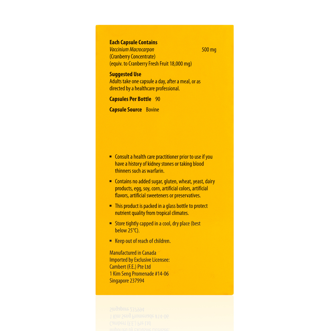 Vaccinium macrocarpon (Cranberry concentrate) 500 mg (equivalent to cranberry fresh fruit 18,000 mg)