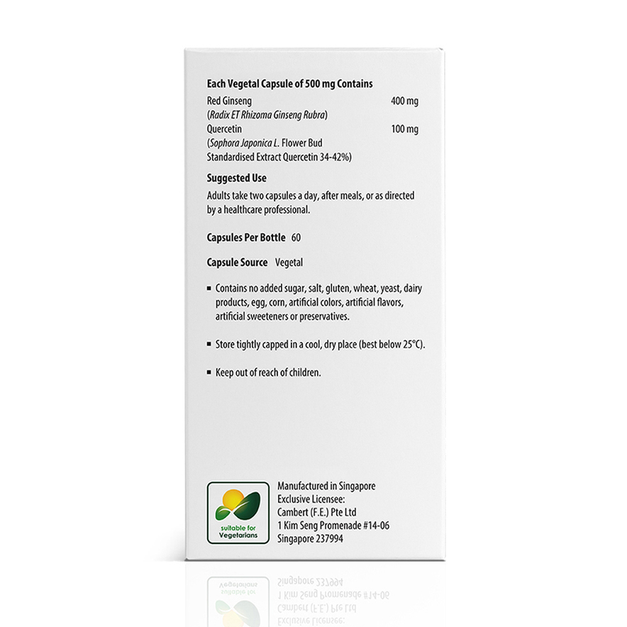 Red Ginseng (Radix ET Rhizoma Ginseng Rubra) 400 mg, Quercetin (Sophora Japonica L. Flower Bud Standardised Extract Quercetin 34-42%) 100 mg