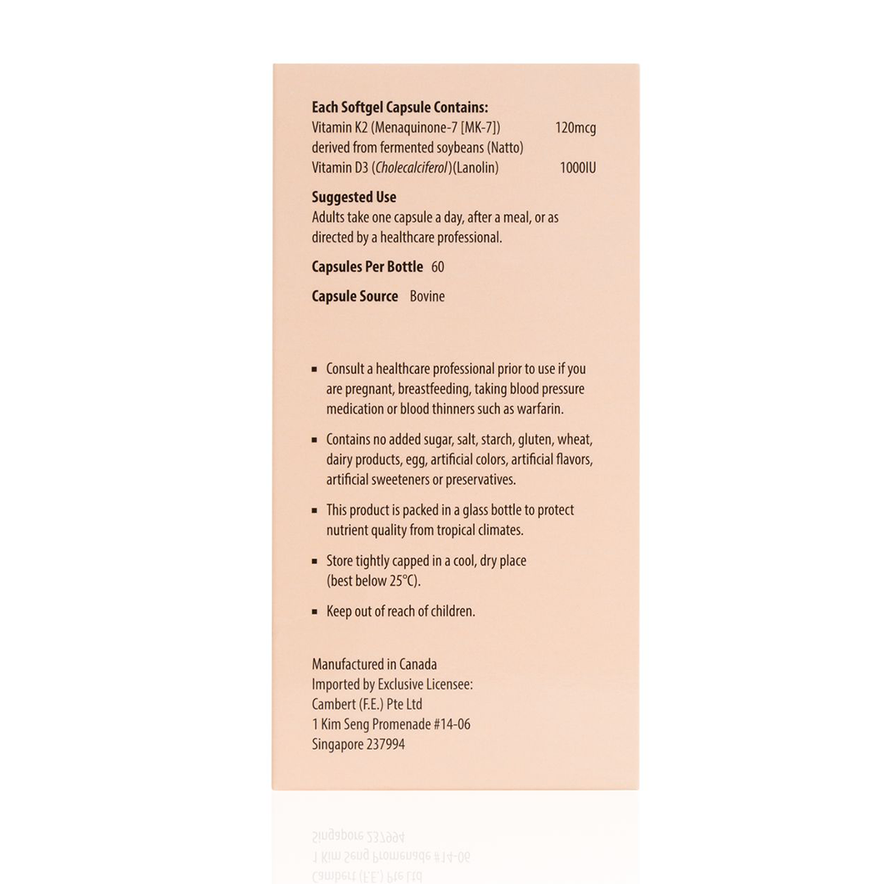 - High Bioavailability: Utilizes Menaquinone-7 (MK-7), a bioactive form of Vitamin K2 derived from fermented soybeans (Natto), for better absorption.