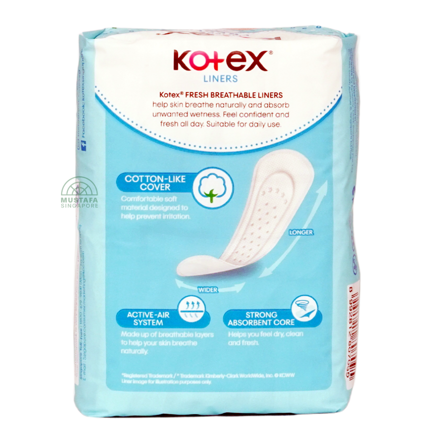 Kotex Liner Fresh Longer & Wider 32s are designed for extra coverage with a breathable and soft top sheet. Longer and wider than regular liners for added security.
