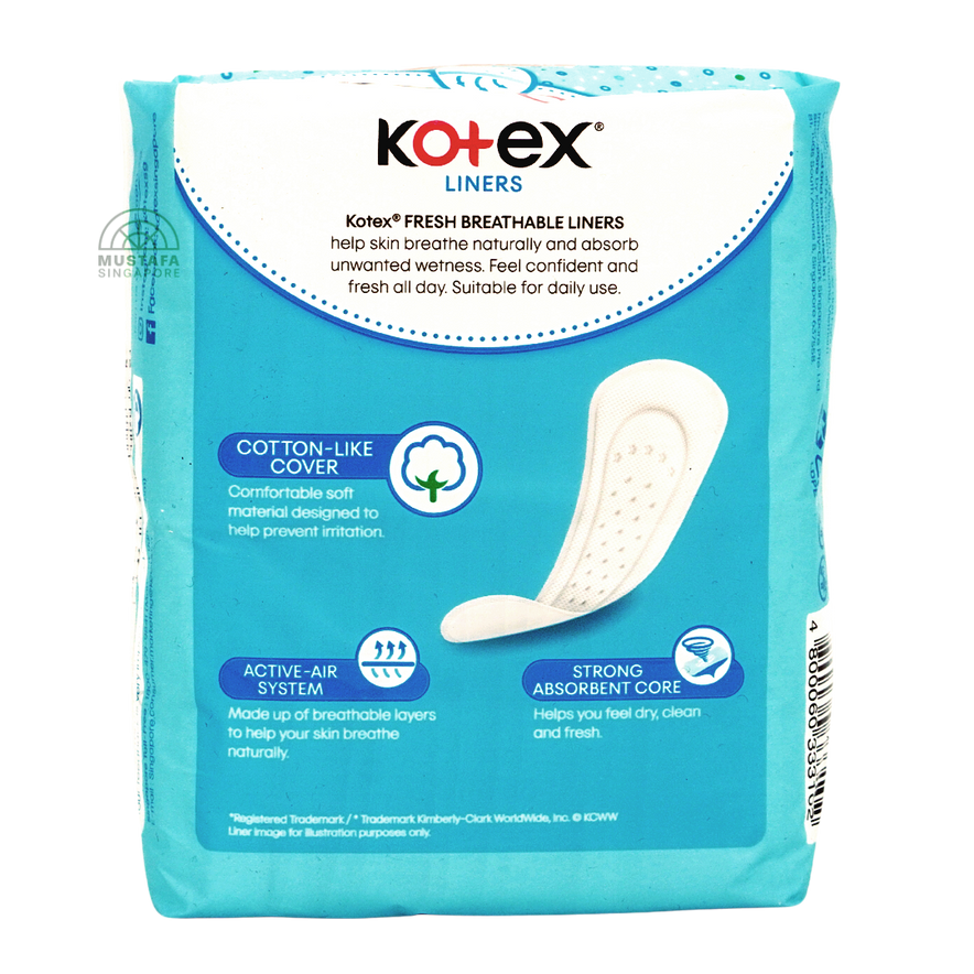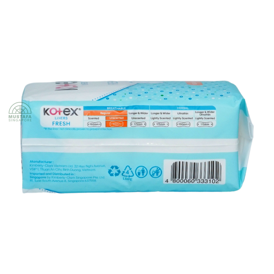 Kotex Liners Fresh Regular Unscented 40s are designed for everyday freshness with a breathable top sheet and unscented comfort. Ideal for light discharge or backup protection.