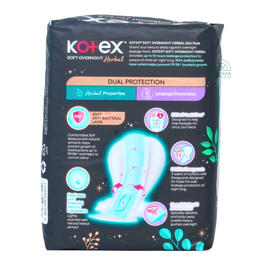 Kotex Soft & Smooth Herbal Slim Overnight 41cm 10s is designed for ultimate overnight protection during heavy flow. With a 41cm length and herbal infusion, these pads combine extended coverage with soothing freshness, giving you maximum confidence and comfort all night.