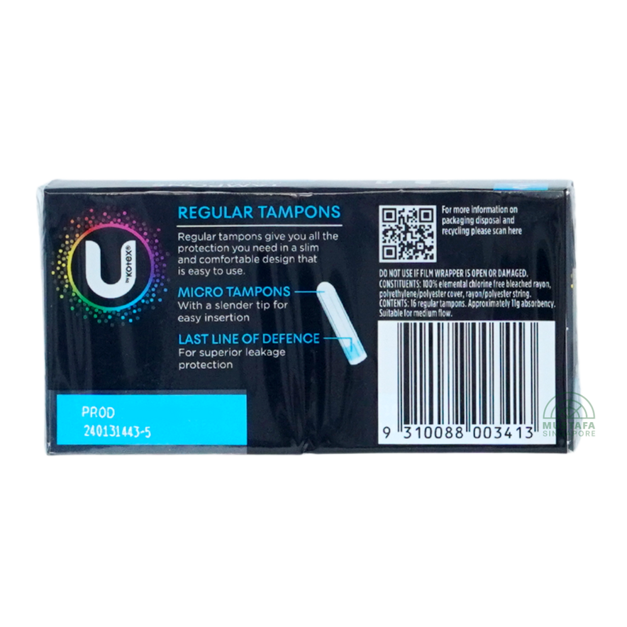Kotex Tampons Regular provide reliable protection for medium flow days. Compact, discreet, and designed for comfort, they give you confidence and flexibility throughout the day.