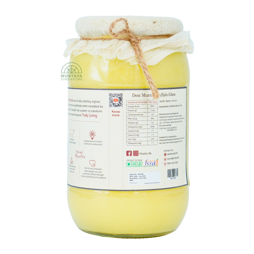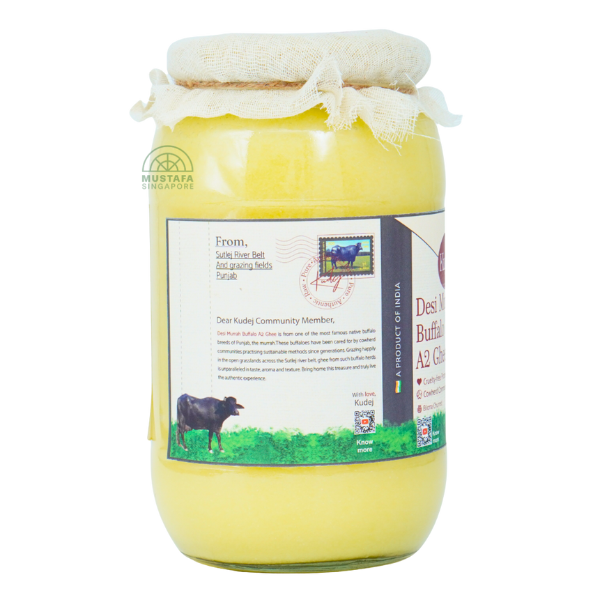 Kudej Desi Murrah Buffalo A2 Ghee 950ml delivers premium A2 ghee from Murrah buffalo milk, perfect for rich, aromatic cooking and traditional dishes.