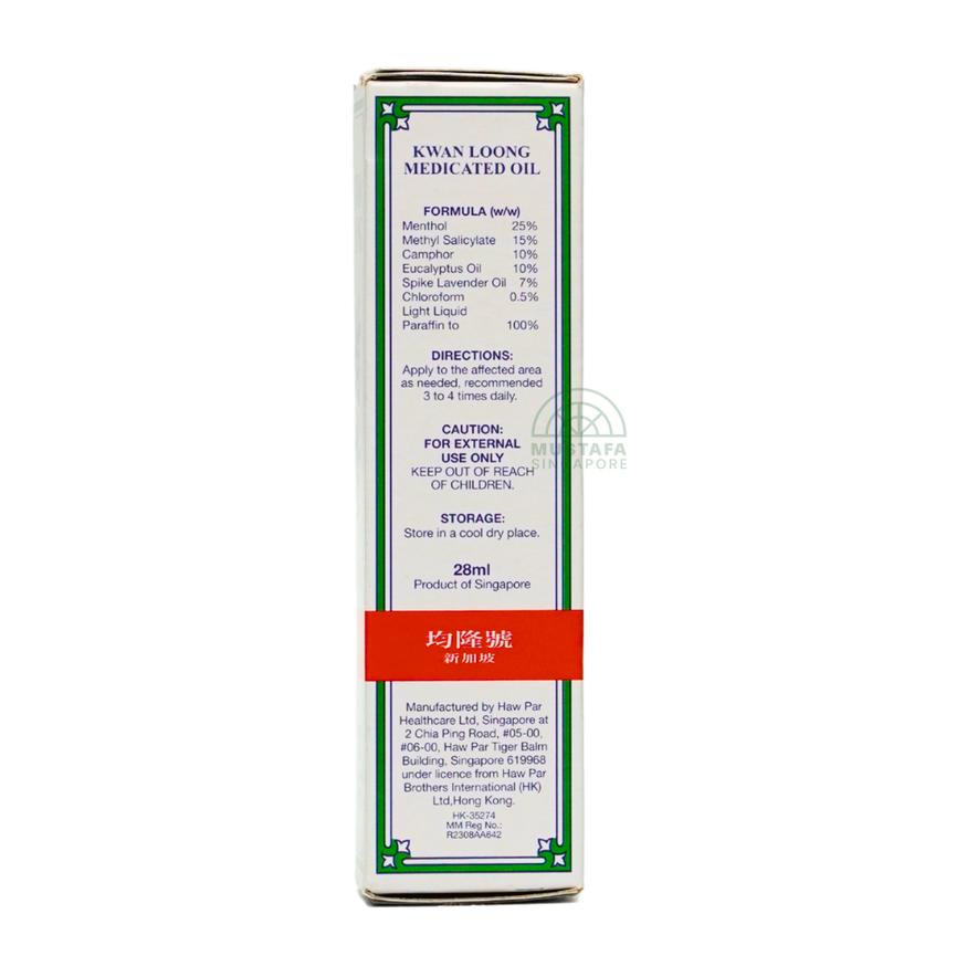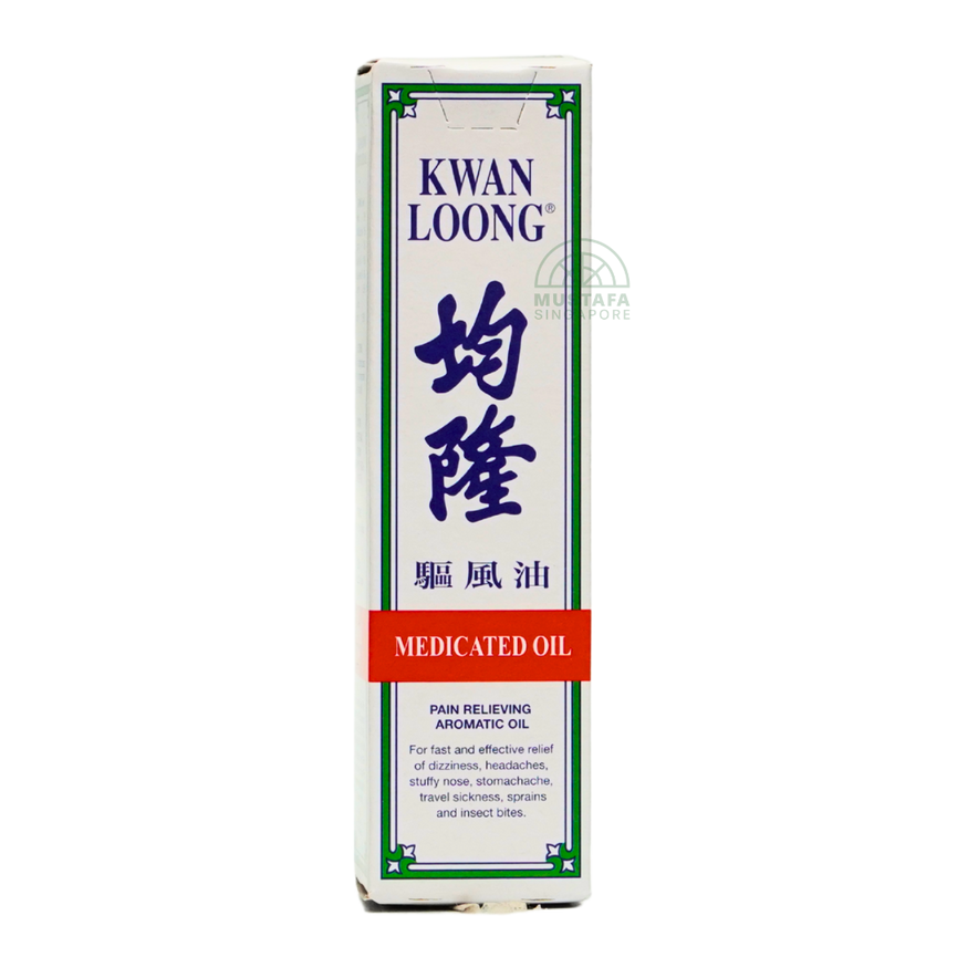 KWAN LOONG Medicated Oil (15 mL) is a compact, aromatic topical oil that provides fast and effective relief for a variety of discomforts including dizziness, headaches, motion sickness, stuffy nose, stomachaches, sprains, rheumatic pains, and insect bites.