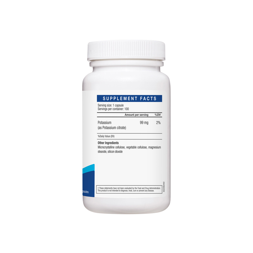 Potassium (as Potassium citrate) 99 mg, Microcrystalline cellulose, vegetable cellulose, magnesium stearate, silicon dioxide. This product contains potassium (as potassium citrate).