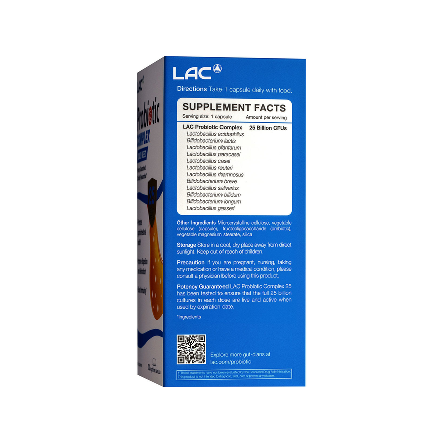 LAC Probiotic Complex Digestive Support 25 Billion CFU x 30 Capsules